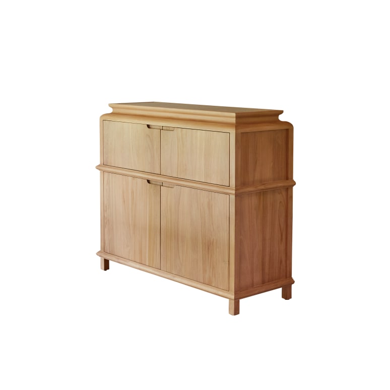 - 2 puertas batientes (arriba), que ocultan cada una un espacio de almacenamiento: al. 27 cm x an. 51 cm x prof. 37 cm