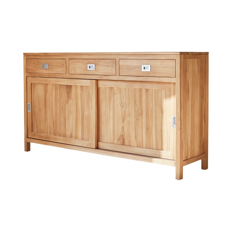 Partes traseras y fondos de los cajones de teca contrachapada.