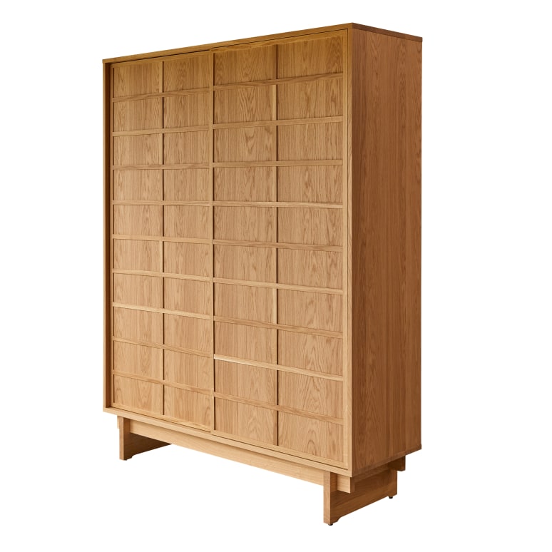 Estructura y patas de roble macizo, puertas de madera contrachapada de roble.