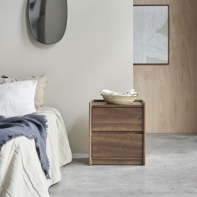 Mesilla de noche de nogal macizo con 2 cajones