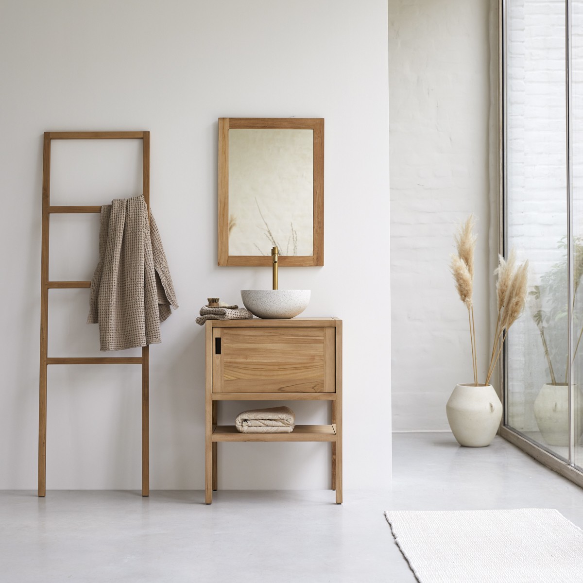 Mueble para lavabo de teca maciza de 60 cm