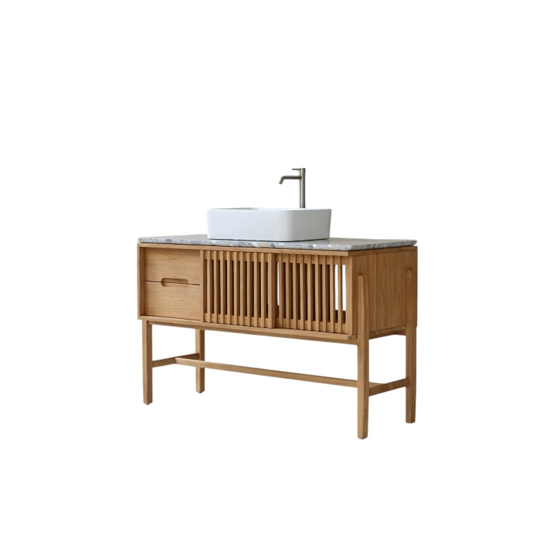 Mueble de baño de teca maciza y terrazo prémium de 125 cm