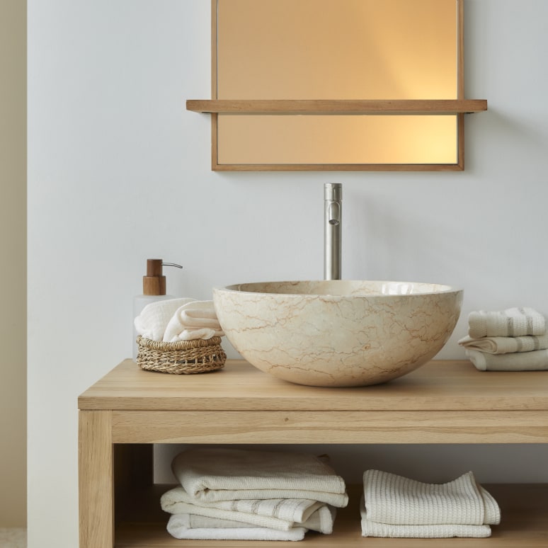 Lavabo redondo de mármol color crema