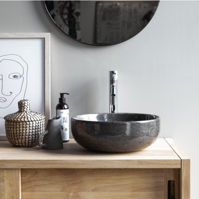 Lavabo redondo de mármol gris oscuro