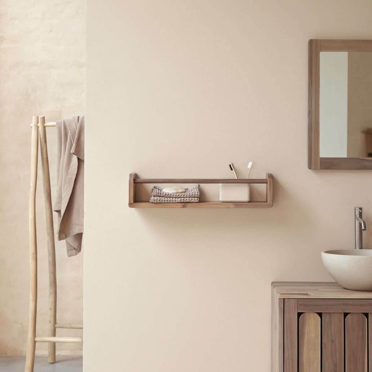 Estante de baño de acacia maciza de 60 cm