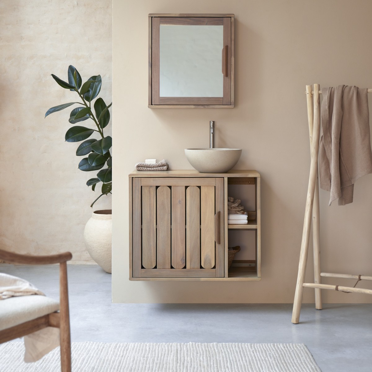 Mueble de baño de acacia maciza de 80 cm
