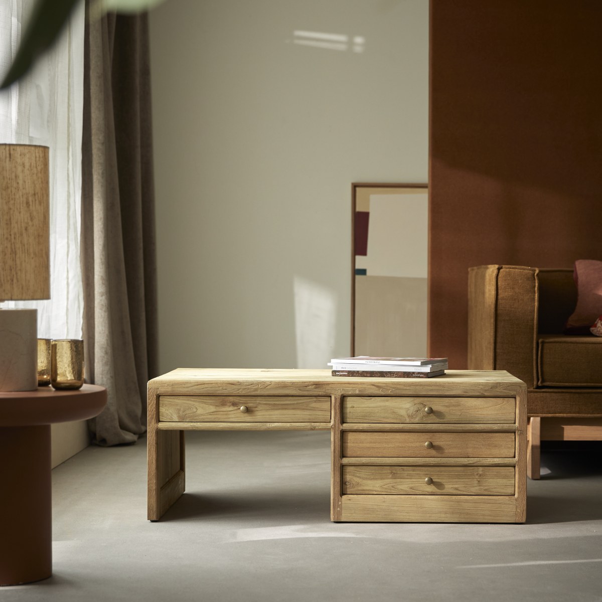 Mesa de centro rectangular de teca maciza reciclada