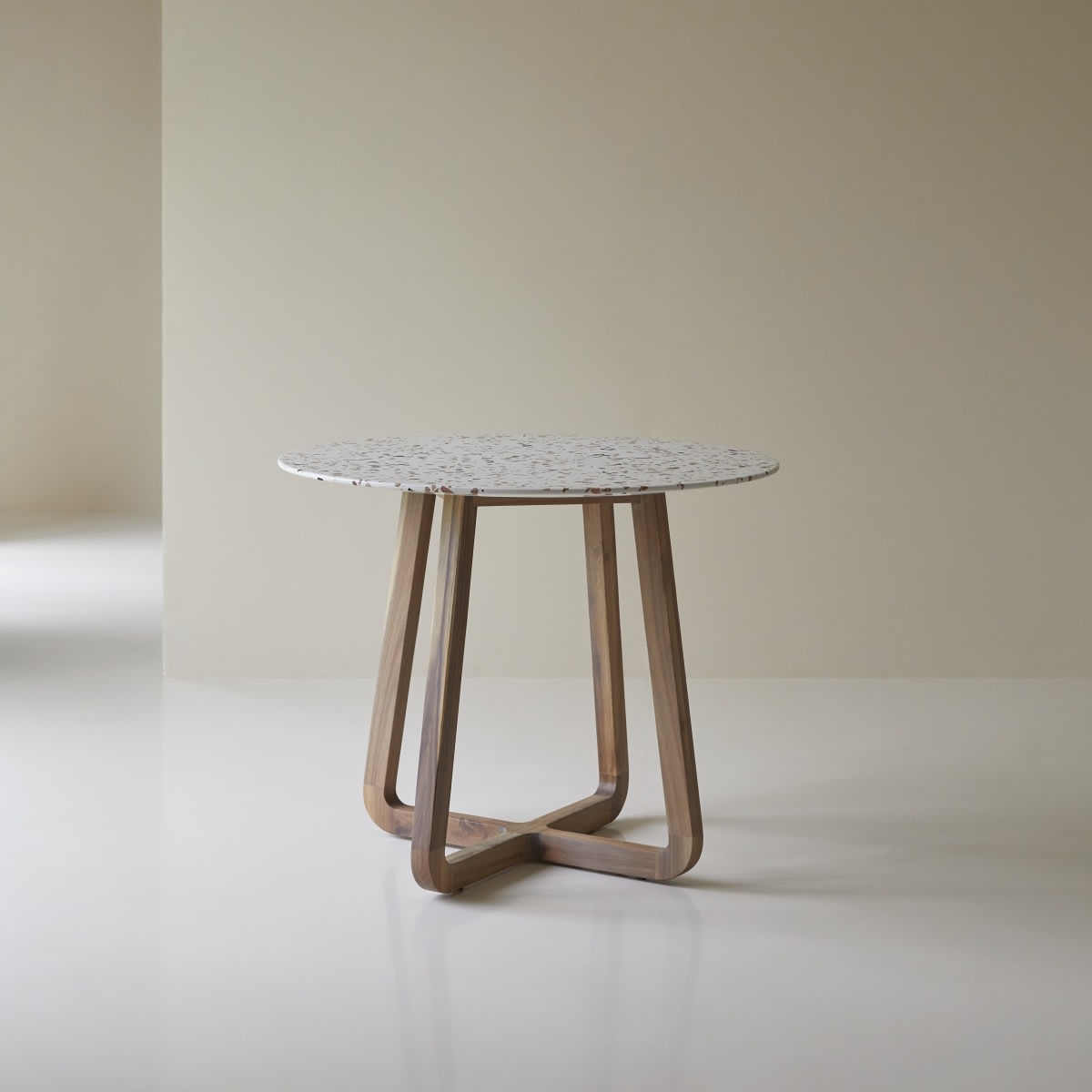 Mesa de jardín redonda de terrazo prémium y acacia maciza 4 personas