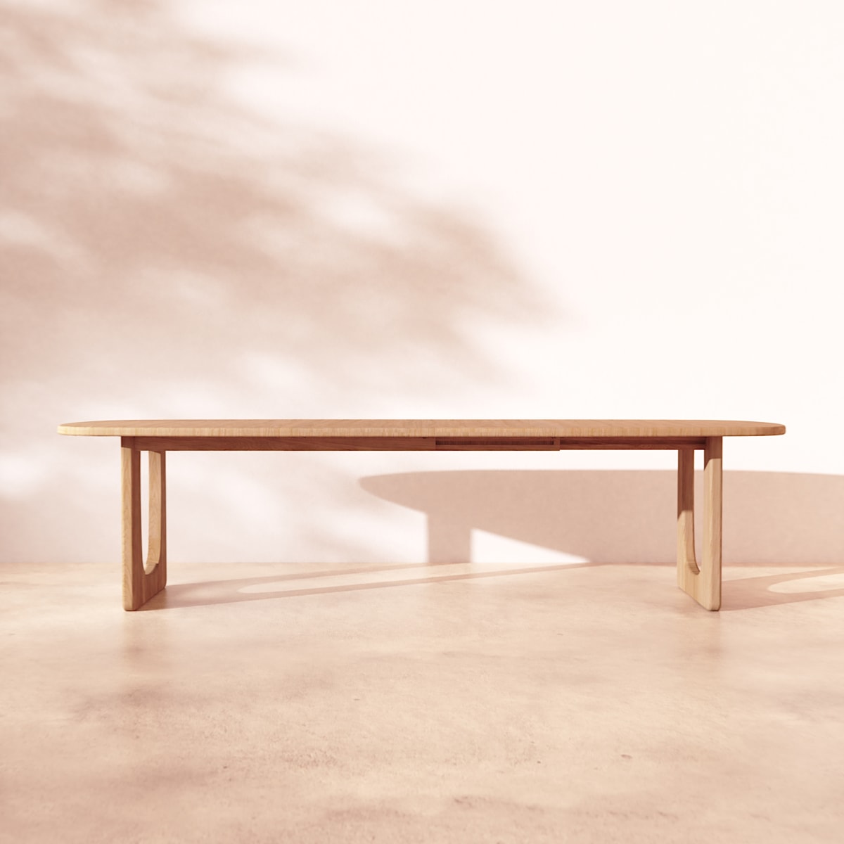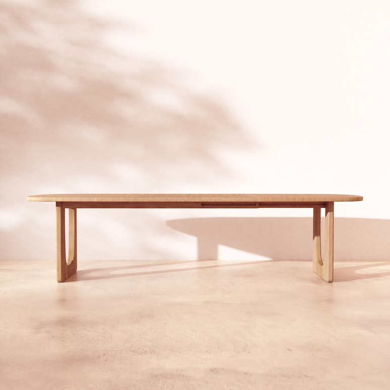 mesa de 200 cm + extensión de 100 cm (2 tableros extensibles plegados dentro de la mesa).
