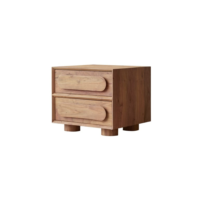 Mesilla de noche de acacia maciza con 2 cajones