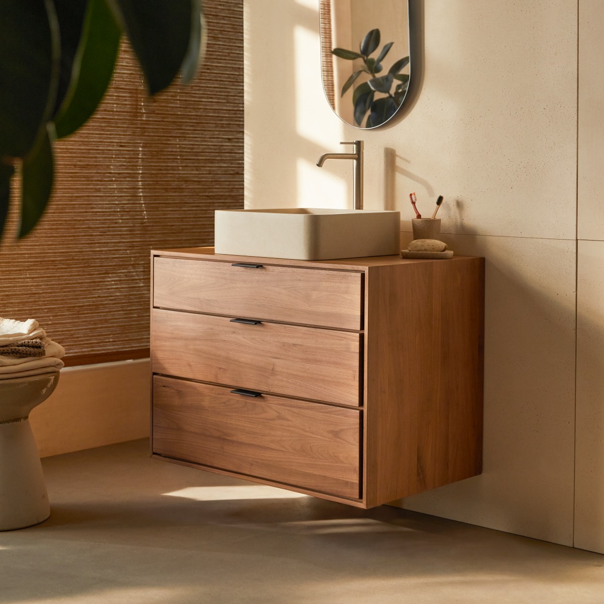 Mueble de baño de nogal macizo 80 cm
