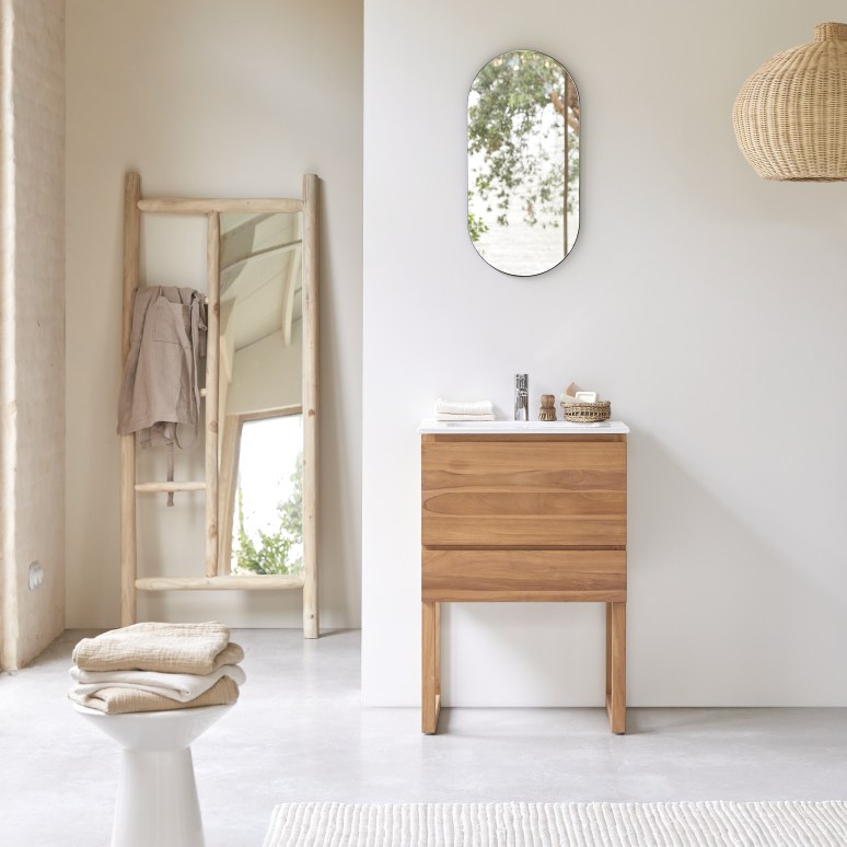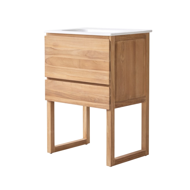 Mueble de baño de teca maciza y cerámica de 60 cm