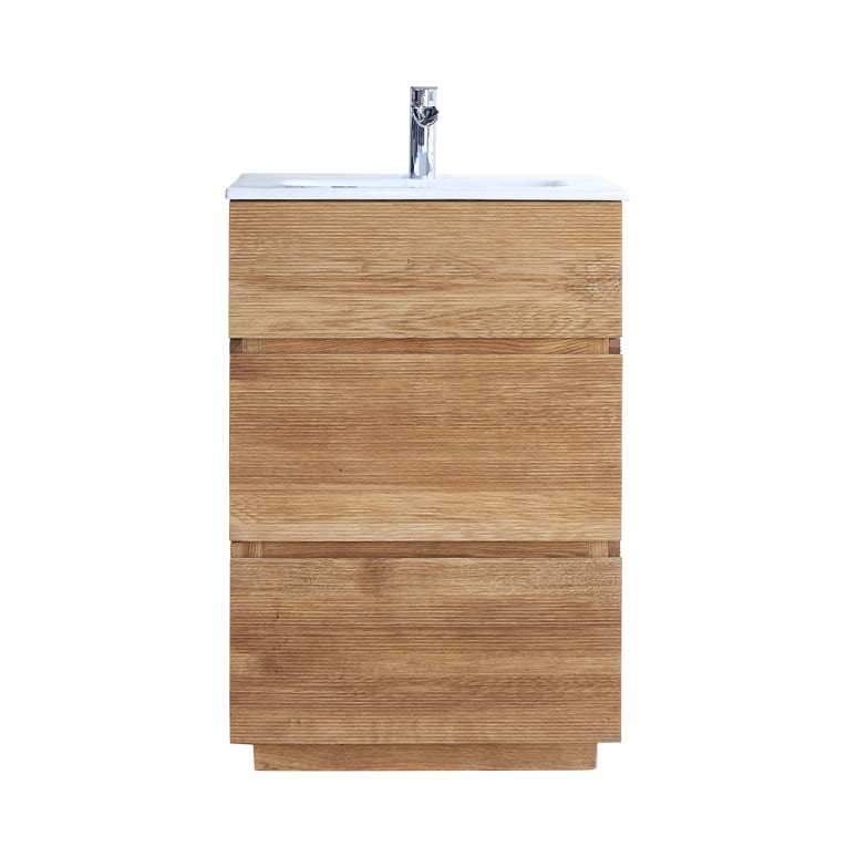 Mueble de baño de roble macizo y cerámica de 60 cm