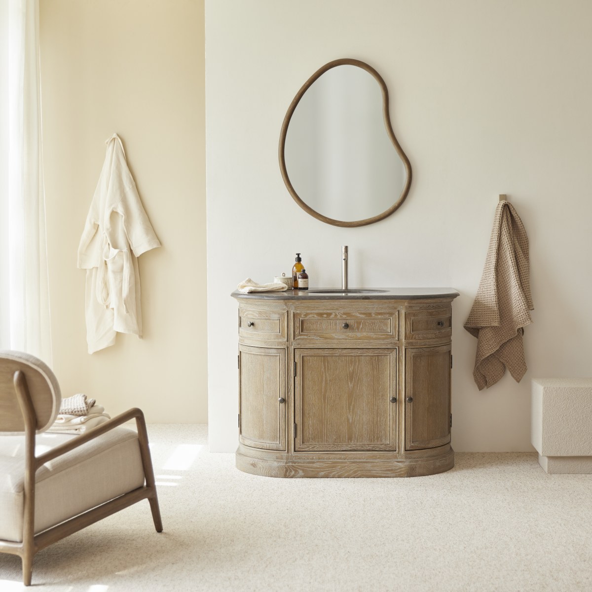 Mueble de baño de roble y piedra de 110 cm