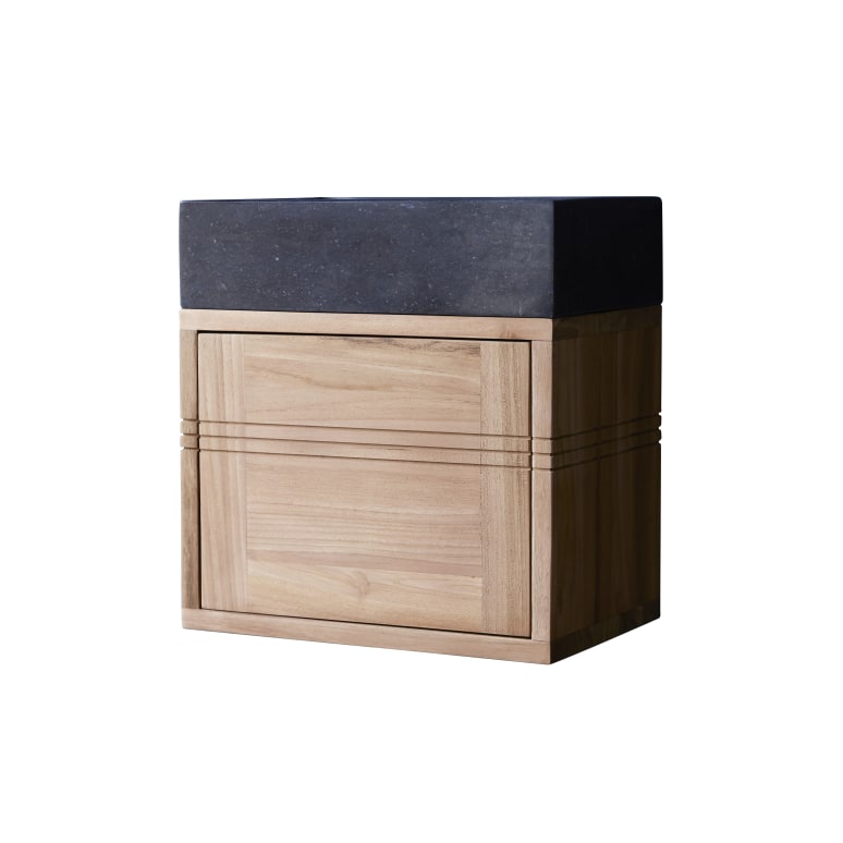 Mueble de baño de teca maciza y mármol negro