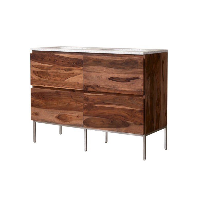 Mueble de baño de palisandro macizo y terrazo prémium Moon de 120 cm