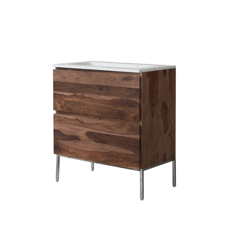 Mueble de baño de palisandro macizo y terrazo prémium Moon de 80 cm