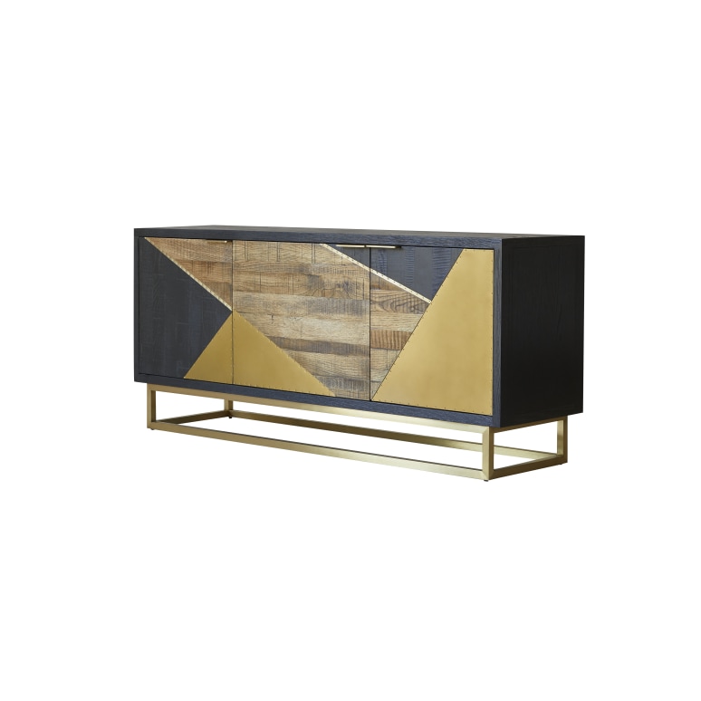 Partes delanteras de zinc y madera barnizada (natural y negra), patas y tiradores de acero inoxidable.