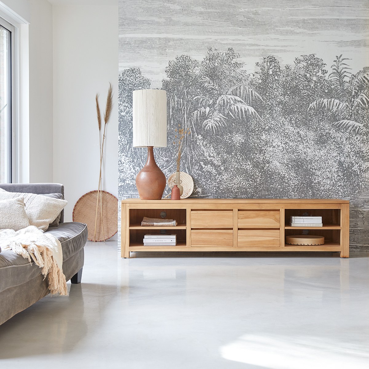 Mueble para TV de teca maciza de 200 cm