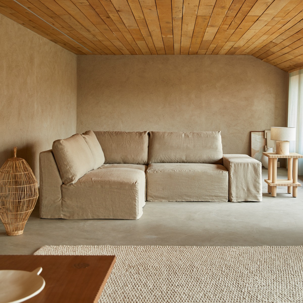 Sofá esquinero modulable de lino natural 3 plazas