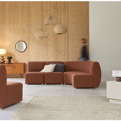 Sofá modular esquinero de 4 plazas de acacia maciza y tela terracota