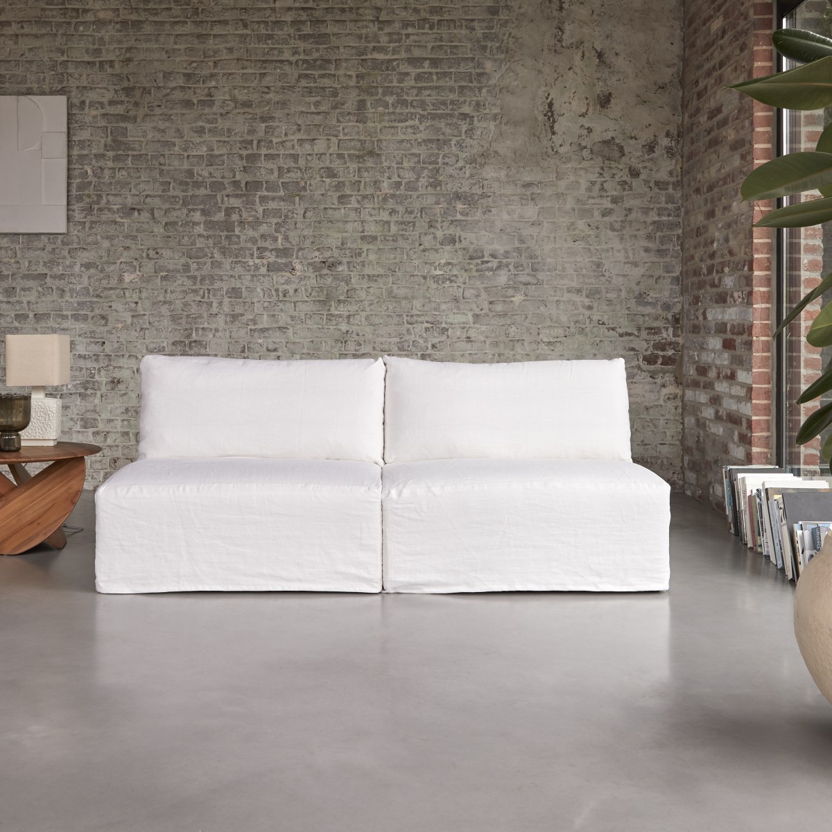 Sofá recto modulable de lino blanco, 2-3 plazas